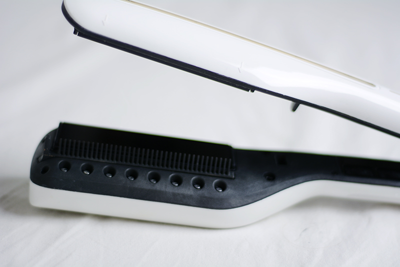Bislang arbeitete ich mit Kamm/Bürste und Glätteisen, dank des Steampod 2.0. kann ich darauf verzichten. Denn tadaaa: Das Glätteisen hat einen eingebauten Kamm (der auch entnommen werden kann). Dadurch werden die Haare direkt beim Glätten entwirrt, gekämmt und präziser geglättet. Ich liebe liebe liebe dieses Gimmick.