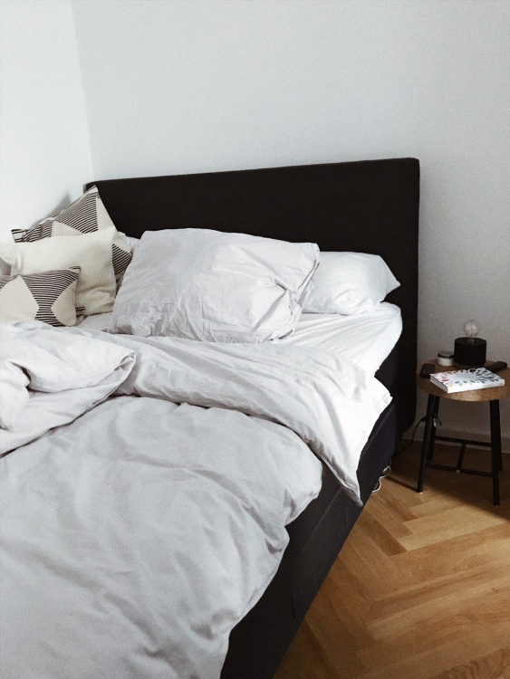Milena hat ja letztens schon über ihre Liebe zu Leinenbettwäsche geschrieben – und auch ich möchte das unterschreiben. Die richtigen Betttextilien werden viel zu oft unterschätzt. Auch hier nochmal mein Appell: Wenn ihr Geld ausgebt, dann doch für Sachen, die wirklich viel und oft genutzt werden. Ein gutes Bett sowie eine tolle Bettwäsche heben eure Lebensqualität – bzw. Schlafqualität – auf ein ganz anderes Level. Ich achte immer darauf, dass meine Bettwäsche aus Leinen oder Baumwolle ist. Auch setze ich auf gedeckte Farben, Mustermix und Co. sind raus. Wichtig ist mir, dass meine Haut gut atmen kann, ich nicht unnötig drunter schwitze und nichts kratzt oder juckt. Außerdem liebe ich es, in frischer Bettwäsche einzuschlafen, mindestens einmal die Woche wird gewechselt!