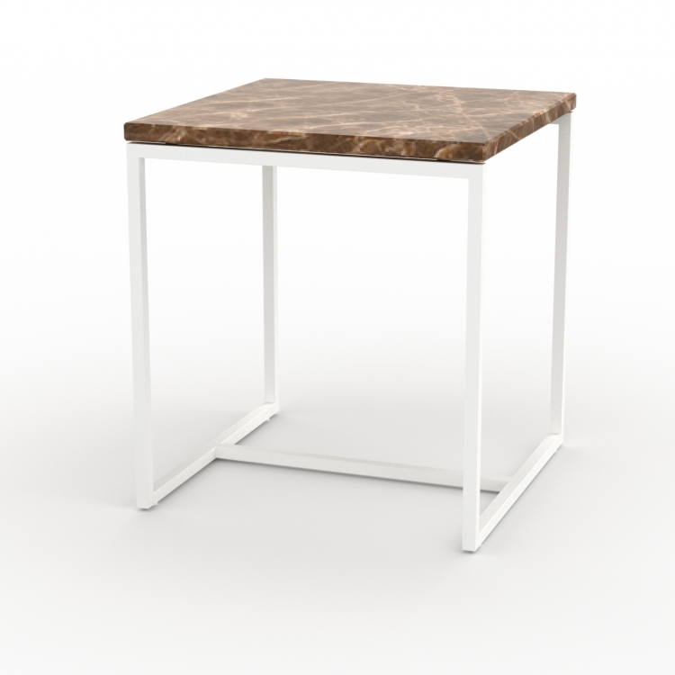 Der Couchtisch besteht aus klassischen, kubischen Metallbeinen und einer Platte aus verschiedenen Marmorarten oder lackiertem Vollholz. Ihr könnt dem Syde Table unterschiedliche Höhen oder Abmaße geben – unser zu verlosendes Modell ist quadratisch und hat die Maße 42 x 46 x 42 Zentimeter. Zum weißen Metallgestell wurde die wunderschöne braun-gesprenkelte Marmorplatte kombiniert, eine Kombi, die zu allem passt und einen zeitlosen Klassiker bildet.