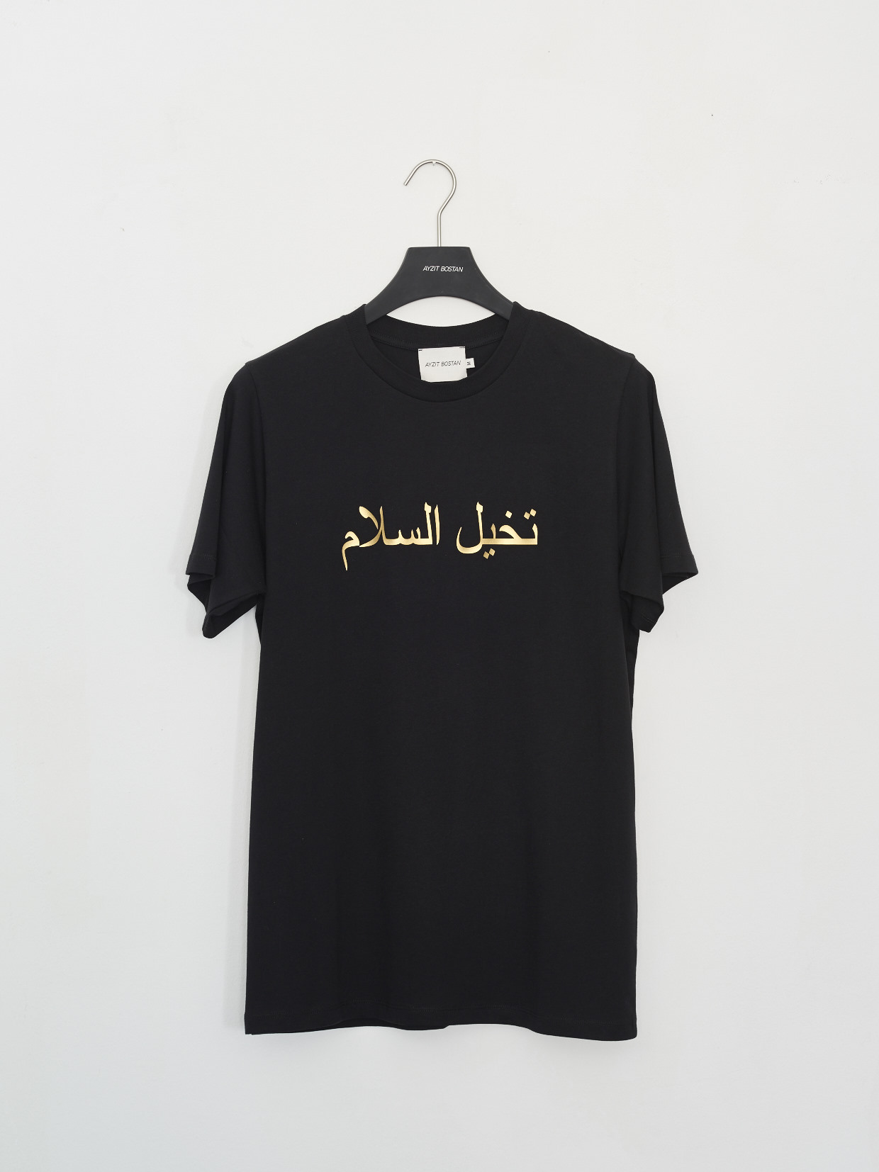 Unser letztes Türchen für euch ist das IMAGINE PEACE T-Shirt von Ayzit Bostan in goldenem Schriftzug in der Größe M. Ayzit Bostan ist eine Modedesignerin aus München mit türkischen Wurzeln, deren Schriftzug IMAGINE PEACE in diesem Jahr aufgrund der schlimmen Lage besonders bekannt wurde. Auch wir haben ein Exemplar und tragen es auf den Straßen dieser Welt. Dieses Shirt ist ein Statement und wir sind stolz und froh, es hier verlosen zu dürfen!