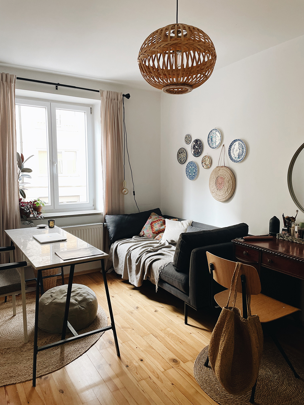 Doch dann zog vor einigen Monaten mein Freund ein, und aus dem vierten Zimmer, das zwischenzeitlich ein WG-Zimmer gewesen war, machten wir ein zweites Arbeitszimmer. Nicht nur mit einem Schreibtisch, sondern auch mit dem ehemaligen Wohnzimmersofa, dass das zweite Arbeitszimmer zu so viel mehr machte als nur einen Raum zum Arbeiten. Das Sofa machte das Zimmer zu einem wirklichen Rückzugsort, an dem man sich gerne aufhält. Zeitung liest, die Tür zumacht, auch mal auf dem Sofa arbeitet.