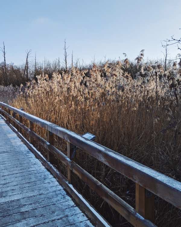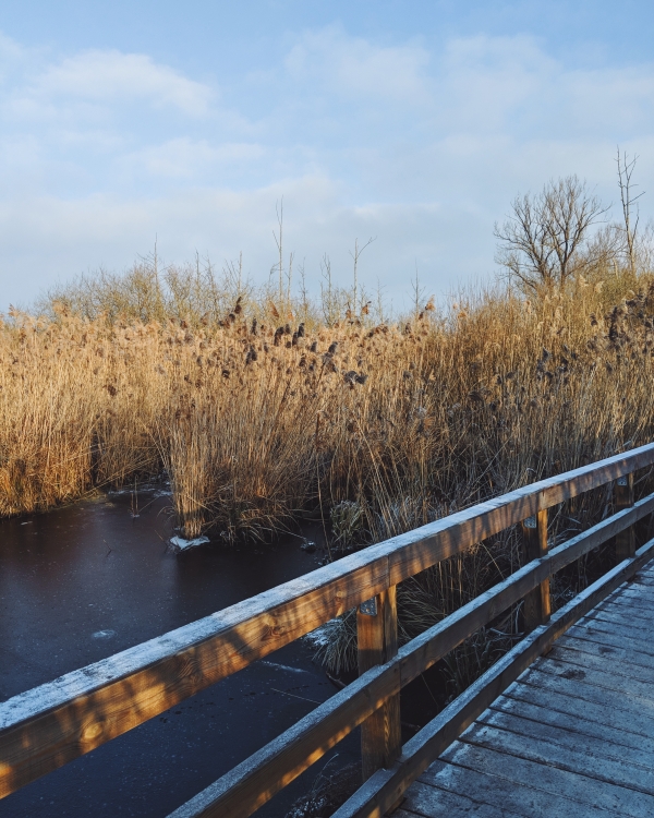 Berlin kann fantastisch die Klappe halten, sobald man sich für nur dreißig Minuten in die S-Bahn setzt. Und das habe ich letztes Wochenende, das mit strahlendem Sonnenschein und eisklarer, klirrender Kälte gerade zu perfekt für einen Ausflug war, getan. Ein Ausflug bedarf nicht grundsätzlich einer großer Vorbereitung und unverschämt frühes Aufstehen. Er kann auch spontan und schlecht organisiert passieren, viel zu spät angetreten werden und trotzdem noch begeistern. Als ich mich letzten Sonntag um 12 Uhr mittags aus dem Bett schälte, beschloss ich, einfach mal ans Tegeler Fließ zu fahren. Das Tegeler Fließ, so sagt man, lockt mit eine der schönsten Naturgegenden innerhalb Berlins und es ist für Faultiere wie mich und womöglich auch einige von euch super schnell zu erreichen. In nur 45 Minuten inklusive Gehweg fanden wir uns plötzlich in einer Oase der Ruhe wieder, umringt von Mooren, eingefrorenen Seen und lauschten den Gesängen vom Kuckuck. Und man glaubt ja gar nicht, was so ein kleiner aber feiner Ausflug mit einem macht. Tränen schossen mir bei dem malerischen Ausblick in die Augen und ich bekam mein breites Lächeln auf dem Gesicht gar nicht mehr weg. Eine fast laute Stille umgab sich mir und plötzlich ist nichts spannender, als das Geräusch von einer Eisplatte, die über einen ebenso eingefrorenen See schlittert.