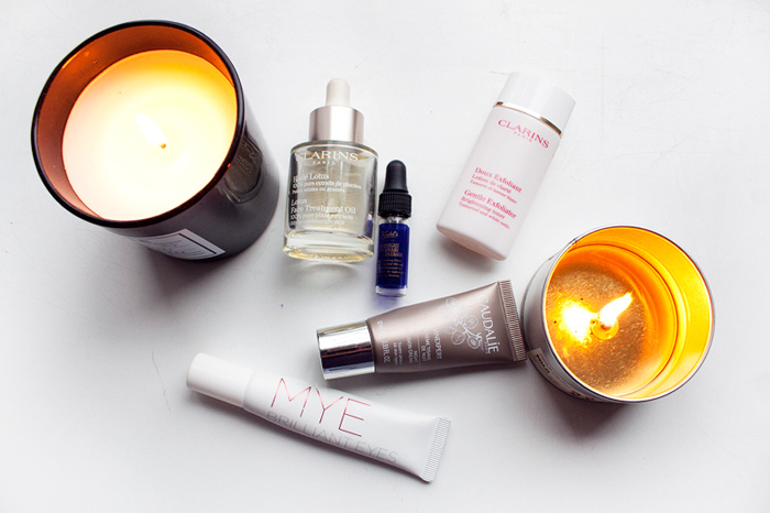 Natürlich muss erst mal die Schminke runter. Das geht am besten mit der Mizellarlotion von Bioderma. Cleansen ist danach gar nicht mehr nötig. Dann folgt immer eine Augenpflege, z.Z. Brilliant Eyes von MYE. Anschließend folgen Produkte, die ich jede Nacht routiere. Die eine Nacht verwende ich Gentle Exfoliator von Clarins – ein Peelinglotion mit AHA. In der nächsten verwende ich eine Nachtcreme von Caudalíe. Als dritte Alternative verwende ich ein Gesichtsöl – entweder das Midnight Recovery Concentrate von Kiehl’s oder Huile Lotus von Clarins.