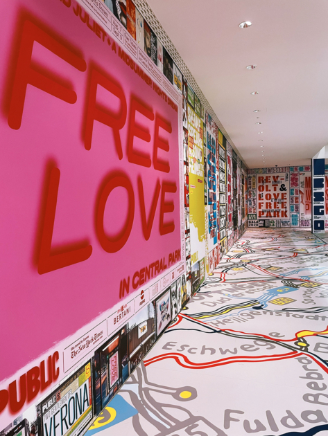 Klar, Museen sind auch eine ziemlich schöne Sache, die man mit Kindern machen kann. Und am Anfang wird es mit Glück sogar auch möglich sein, ganz in Ruhe mit schlafendem Kind im Wagen durch Ausstellungen zu schlendern – doch ich weiß schon jetzt, dass das auch sehr gut eine Wunschvorstellung bleiben kann. Deshalb möchte ich die entschleunigte Zeit des Mutterschutzes noch für mindestens einen Museumsbesuch nutzen. Was das jeweils für eine innere Ruhe, Inspiration und für schöne Gefühle in einem auslöst, konnte ich vor Kurzem wieder empfinden, als ich zusammen mit ArbeitskollegInnen die Paula Scher Ausstellung in der Pinakothek der Moderne besuchen durfte, sogar mit einer sehr spannenden Führung. Allen, die sich für Typographie, Grafik oder auch Albumcover-Gestaltung interessieren, kann ich die Ausstellung nur ans Herz legen. Paula Scher ist eine der einflussreichsten Grafikerinnen der Welt, die einen riesigen, geschwungenen und sehr faszinierenden Raum in der Pinakothek der Moderne gestalten und mit ihrem Lebenswerk füllen durfte, die Ausstellung geht noch bis September 2024.
