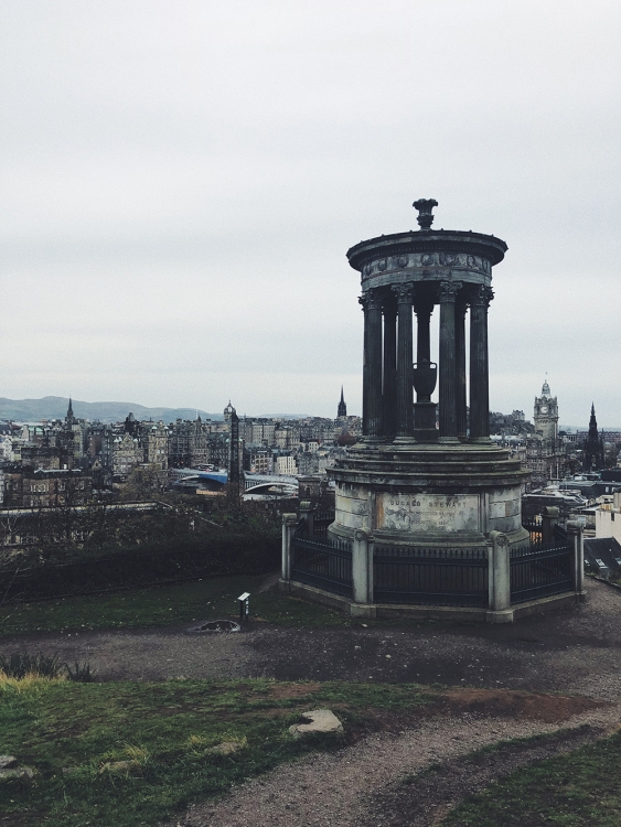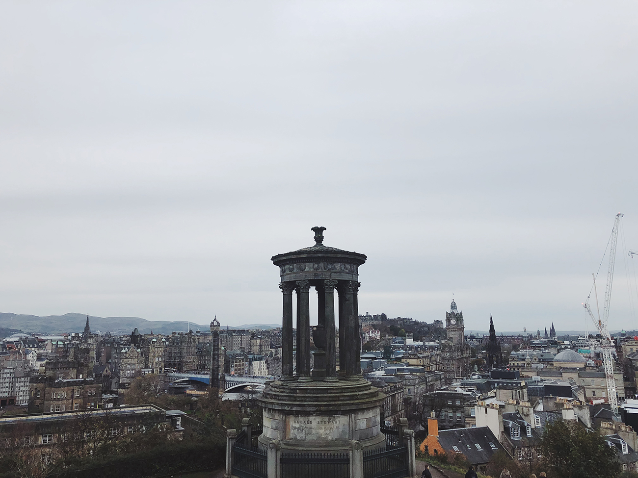 Biegt man vom Grassmarket aus rechts ab und läuft einmal durch die Altstadt, kommt man auf der östlichen Princes Street heraus und ist in ein paar Minuten oben auf dem Calton Hill angekommen. Hier liegt einem Edinburgh zu Füßen, der Blick reicht bis zum Meer, über das Edinburgh Castle bis zu den Bergen, und rüber zum Arthur’s Seat, dem kleinen Gipfel mitten in der Stadt, den wir vor ein paar Jahren bestiegen.