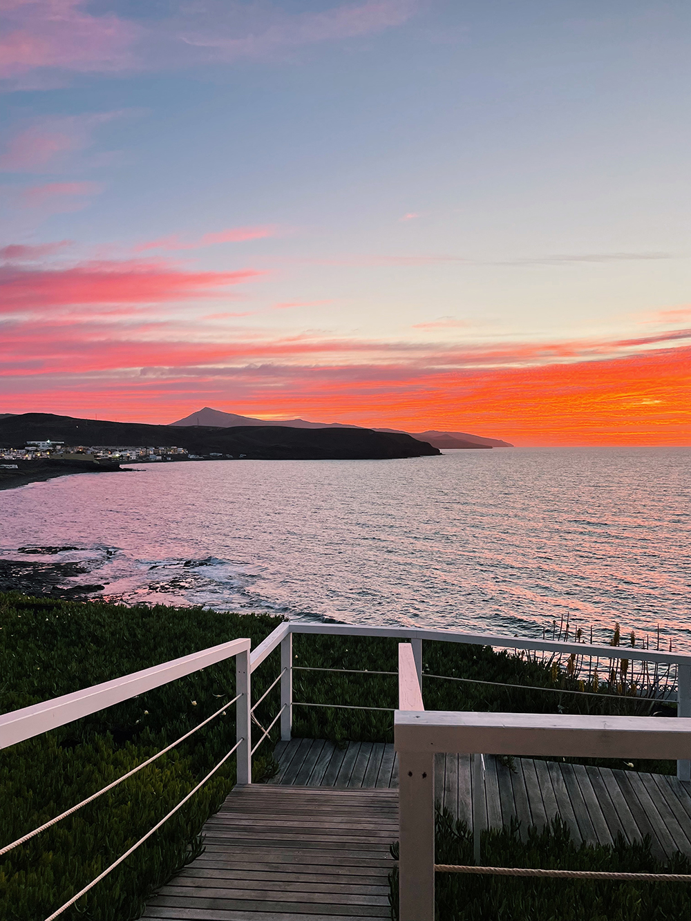 Die Etti-Apartments liegen auf einer Klippe in der Nähe von La Lajita, im Süden von Fuerteventura, wo wenige Kilometer weiter unendlich lange Sandstrände beginnen. Direkt beim Vermieter zu buchen lohnt sich übrigens und gibt nochmal einen Preis-Rabatt gegenüber Plattformen wie Airbnb. Und dieses Apartment in der kleinen Anlage war wirklich genau, was ich gebraucht habe: ein Ort völliger Ruhe, an dem man auch den anderen Gästen nie in die Quere kam und selbst kochte, statt im Hotel mit vielen anderen zu essen. Und ein Ort, der sich anfühlte, als würde man über dem Meer schweben, an dem man morgens vom schönsten Sonnenaufgang geweckt wurde, und an dem ich mich, sobald mein Handy im Nicht-Stören-Modus war, für ein paar Tage mental so richtig ausklinken konnte.