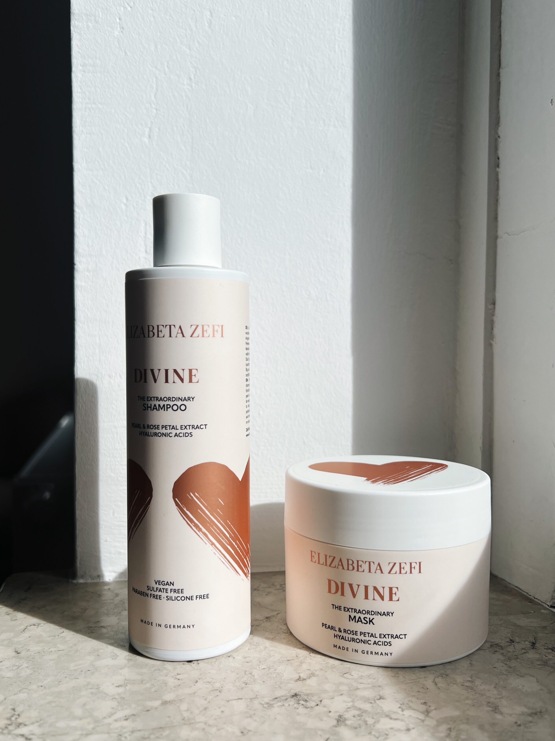 Stichwort Experimentierfreude: Bei meinen Haaren kommt sie dann doch raus. Ich bin immer auf der Suche nach den besten Haarshampoos für meine feineren Haare. Und so richtig habe ich noch kein All-Time-Favorit gefunden. Die Haarpflegeserie von Elizabeta Zefi kommt meinen Wünschen jedoch extrem nah – vor allem jetzt im Winter. Das Shampoo und der Conditioner aus der „Divine“-Serie ist angereichert mit ganz besonderen Inhaltsstoffen wie Perlenextrakt, Rosenblütenextrakt, niedermolekularer und hochmolekularer Hyaluronsäure, Quinoa Extrakt, Rote Beete Extrakt und Weizen Protein. Alles natürliche Wirkstoffe, die die Haare zum Strahlen bringen sollen. Außerdem vegan, silikon-, paraben- und sulfatfrei. Und meine Haare? Die freuen sich über so viel Pflege. Sicherlich ein Haar-Duo nicht für jeden Tag, aber genau das Richtige, wenn ich meinen Haaren ein bisschen Extra-Pflege gönnen will.