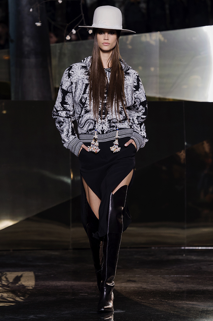 Stark, weiblich, folkloristisch – das sind Eigenschaften, die mir sofort ins Gedächtnis kommen, als ich den Showroom von H&M betrete, der heute gefüllt ist mit der Studio Kollektion für den Herbst/Winter 2016. Strahlendes Rot, Altweiß, Schwarz und Camel beherrschen den Farbton. Starke oversized Schnitte in den Mänteln, voluminöse Ärmel und sanduhrförmige Schnitte, die an „skurril“ perfekt vorbeischlittern und somit im Begriff „außergewöhnlich“ bleiben – im Rahmen des Tragbaren. Die Kollektion von H&M Studio ist eine Ode an die Frau – und zwar jeder Frau. Das beweist der Schwede nicht nur durch seine Show, in der unterschiedlichste Frauen liefen. Kurvige Frauen, ältere Frauen, junge Frauen, tätowiert, aus unterschiedlichen Ländern in unterschiedlichen Hautfarben. Diese Vielfalt aller Frauen spiegelt sich in den Schnitten und Stoffen der Einzelteile wieder: Straighte, kastige und oversized Schnitte treffen auf fließende Stoffe, betonter Taille, Anzüge, bedruckter Seide und aufwendige Stickereien im Folklore-Stil.