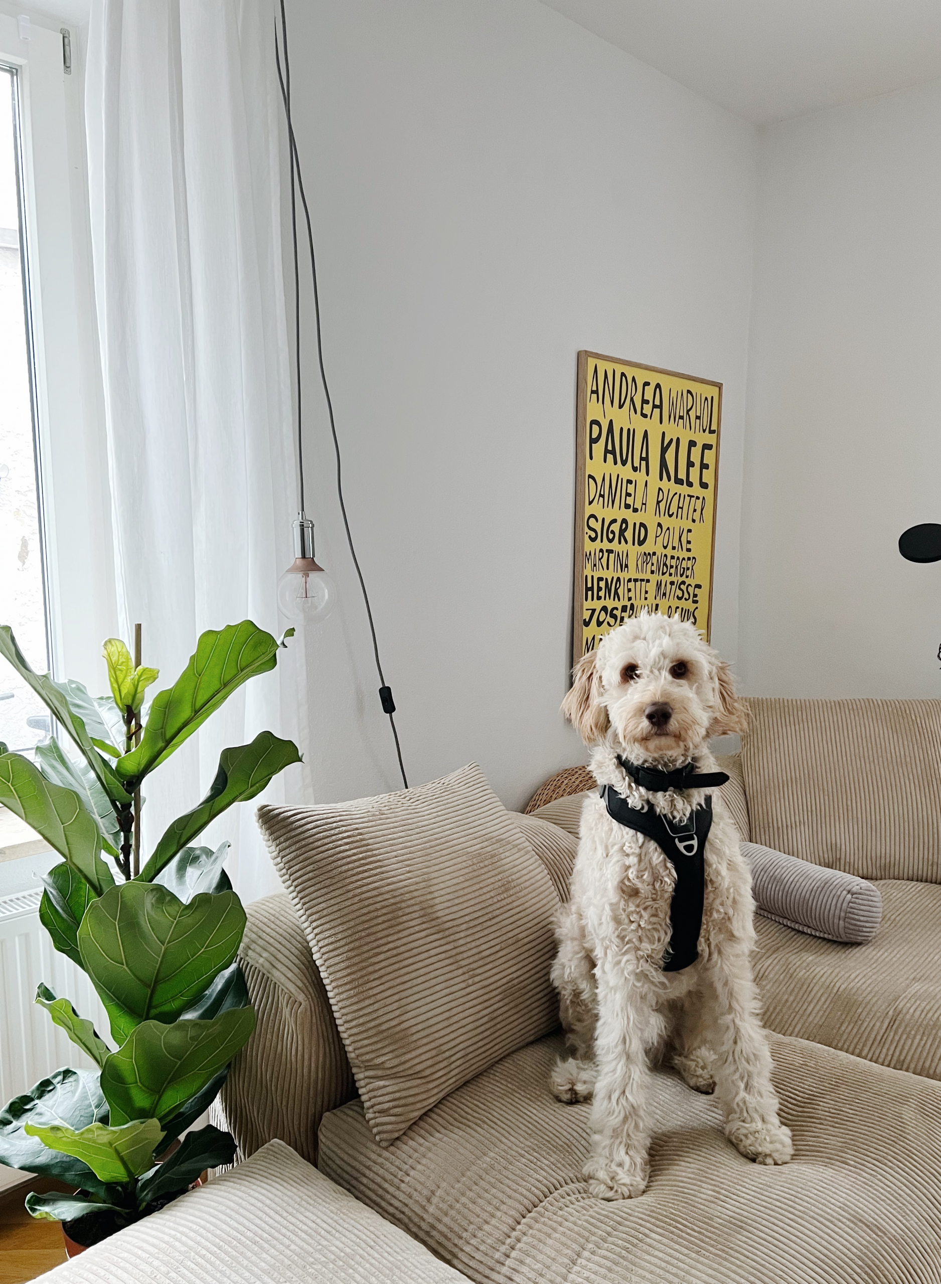 Nach kurzer Internetrecherche, Ausmessungsversuchen und kleineren Diskussionen war klar: Wir haben uns Hals über Kopf in das Vetsak Sofa verliebt. Groß genug für alle Familienmitglieder, schön genug für mein Auge und gemütlich genug für einfach jeden. Dass uns Vetsak mit dem Sofa dann eine Freude gemacht hat, macht mich noch ein bisschen glücklicher. Das Sofa ist ein Geschenk, das mich dankbar, sprachlos und vor allem sehr demütig zurücklässt. So schön die Vetsak Sofas sind, sie sind eine wahre Investition. Eine, die ich definitiv bereit war, auszugeben. Denn wir planen langfristig, ich möchte auf langlebige Stücke setzen und die Umwelt schonen. Außerdem lassen sich die Bezüge von Vetsak waschen, austauschen und mein Favorit Cord wird ja sowieso mit den Jahren immer schöner. Umso größer ist die Freude jetzt. Ich hege das Sofa wie einen Schatz, freue mich über jeden Moment, in dem wir das Sofa in Beschlag nehmen. Erlaube Pepe ganz selten einen Nap auf dem Sofa und bin dankbar für die Bezüge, die sich wirklich ganz einfach abziehen lassen. Ob Ölschmiere oder dreckige Pfoten: Beides schon für euch mit schwitzenden Händen getestet, beides ging glücklicherweise bei 30 Grad problemlos raus.