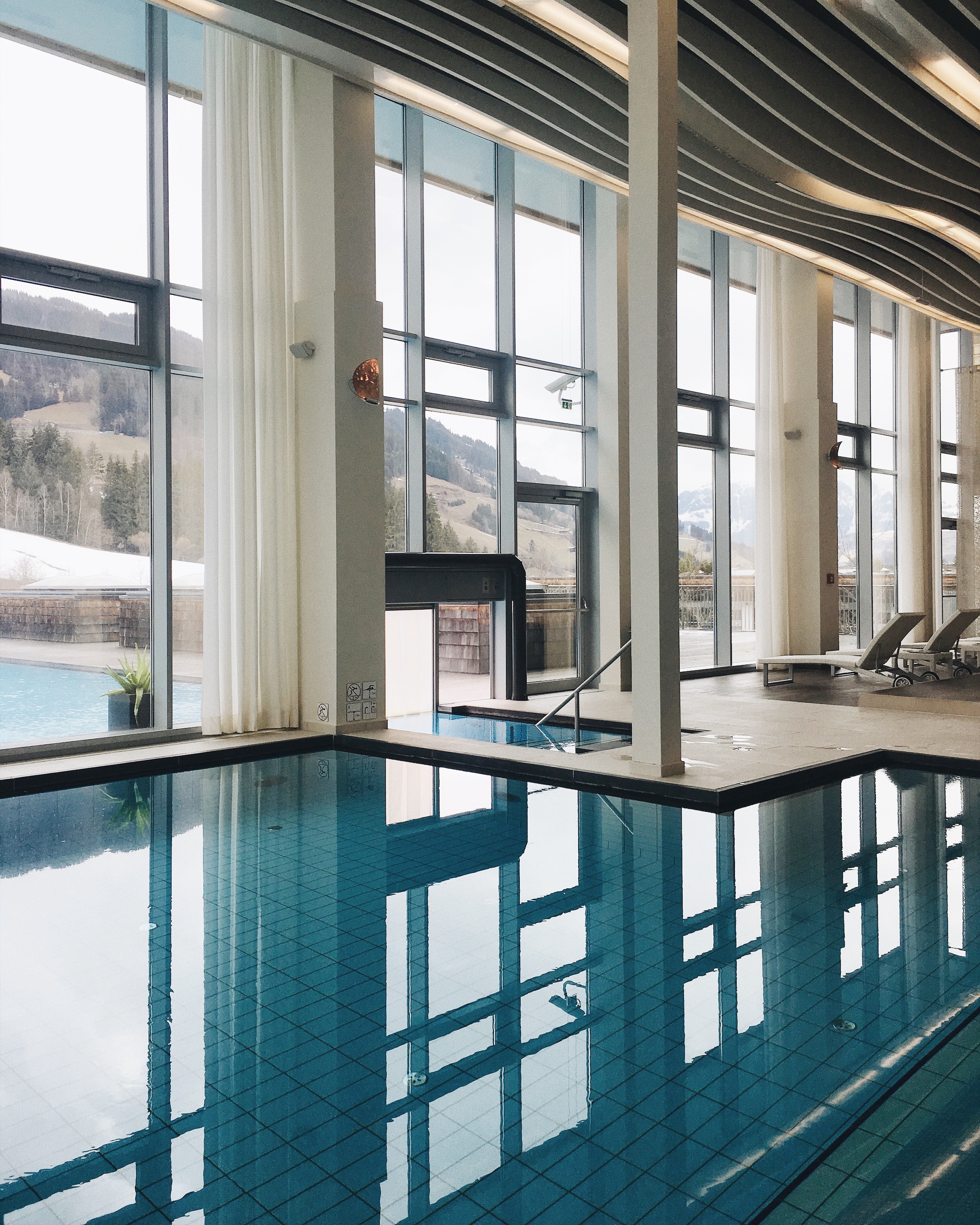 Wir haben arbeitstechnisch eine der anstrengendsten Wochen überhaupt hinter uns. Die amazed-Planungen laufen auch Hochtouren, und wir alle widmen uns gerade in unserer Freiberuflichkeit neuen zeitaufwendigen Herausforderungen. Das steigende Arbeitspensum spaziert Hand in Hand mit dem Sozialstress – schließlich will der Freundeskreis weiterhin gesehen und geliebt werden. Da kam es uns gelegen, das letzte Wochenende im sonnigen Tirol verbringen zu dürfen. Das Kempinski Wellnesshotel hat uns für zwei Nächte zu sich eingeladen und wir konnten natürlich nicht anders als uns der allertiefgehendsten Tiefenentspannung in den Bergen hinzugeben. Trotz angekündigtem Regenwetter hatten wir Glück und durften unsere Nasen im beheizten Außenpool in die Sonne strecken – mit geschlossenen Augen fühlte sich das fast wie Hochsommer in Griechenland an.