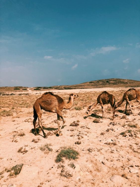 Wie eine blutrote Scheibe geht eine Stunde später die Sonne über den Dünen auf. Wir steigen wieder in die Jeeps, kommen nach der Kühle der Nacht in der Hitze des Vormittags wieder im Hotel an und verbringen unseren letzten Tag in den Wellen des Meeres, mit der Wüstennacht in den Gedanken. Am nächsten Morgen abzureisen fällt mir schwerer, als es je war. Auf dem Weg zum Flughafen trottet wieder eine Kamelherde gemächlich über unsere Straße, und wir hoffen ein bisschen, einfach unseren Flug zu verpassen. Natürlich läuft aber alles glatt an einem der modernsten Flughäfen, die ich kenne, und wir müssen schließlich doch Abschied nehmen – aber nicht für immer, das ist jetzt schon sicher.