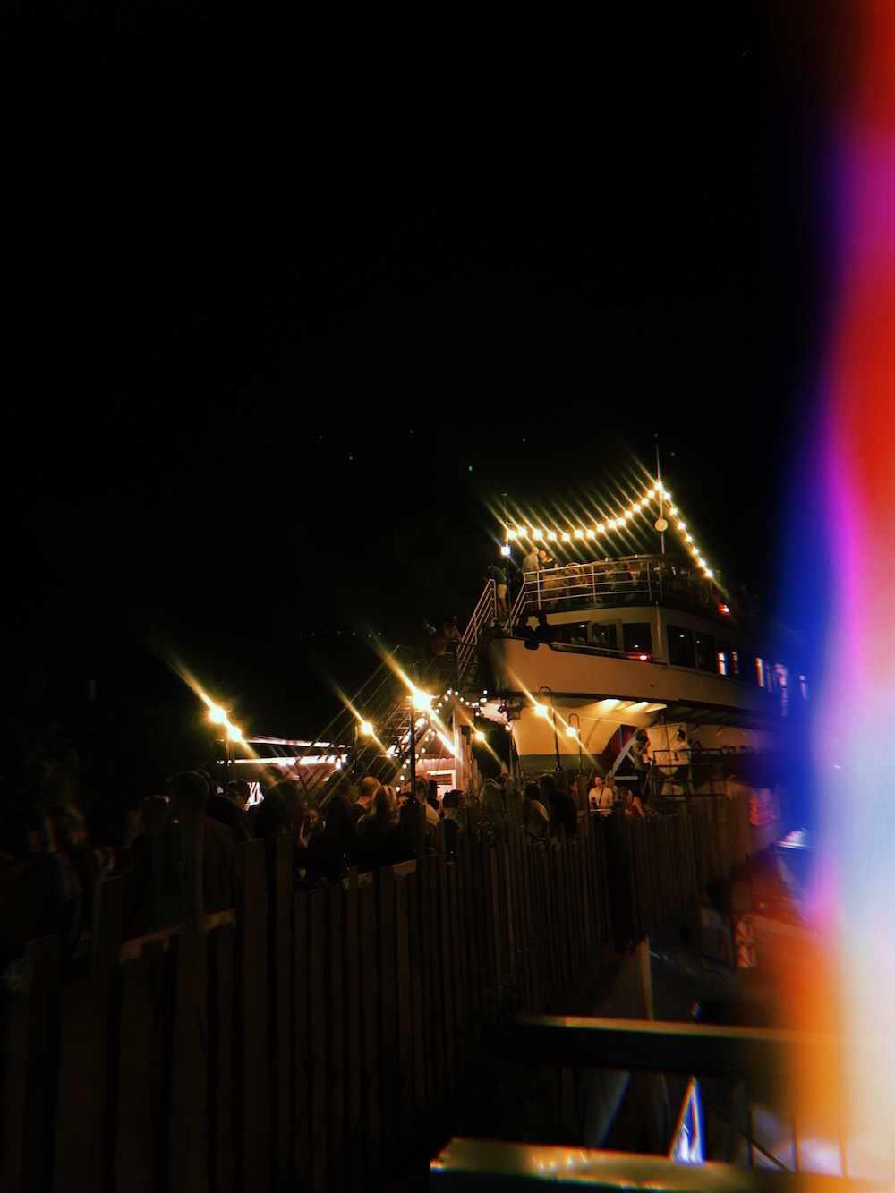 Herausgekommen ist nicht nur ein altes Schiff, auf dem jetzt gesessen und dem Sonnenuntergang zu gesehen werden kann, sondern eine Oase für uns Großstädter. Rund um das Schiff gibt es eine Art Biergarten, ein Teil liegt unter Bäumen im Schatten, der Rest ist von Holzplatten gesäumt. Essenstände sorgen dafür, dass man nicht verhungert – und Getränke gibt es an verschiedenen Bars.