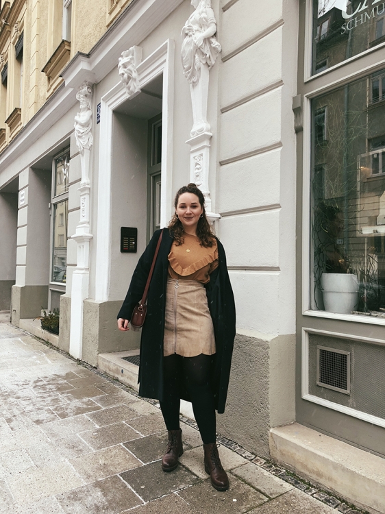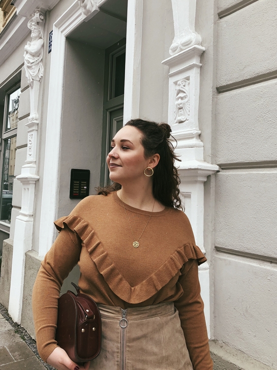 Dieser camelfarbene Rüschenpulli ist nun also bei mir eingezogen, und er ist trotz seines Daseins als Pulli so dünn, dass er nächste Woche auch in den Koffer Richtung Sonne gepackt wird. Die kommende Reise ist auch der Grund, weshalb ich diese Woche wirklich so wenig wie möglich vor die Tür gegangen bin, denn gerade heißt es vorarbeiten, bis alles so weit geschafft ist, dass ich eine Woche ausbüxen kann. Wo es hingeht, das erzähle ich euch dann bald!