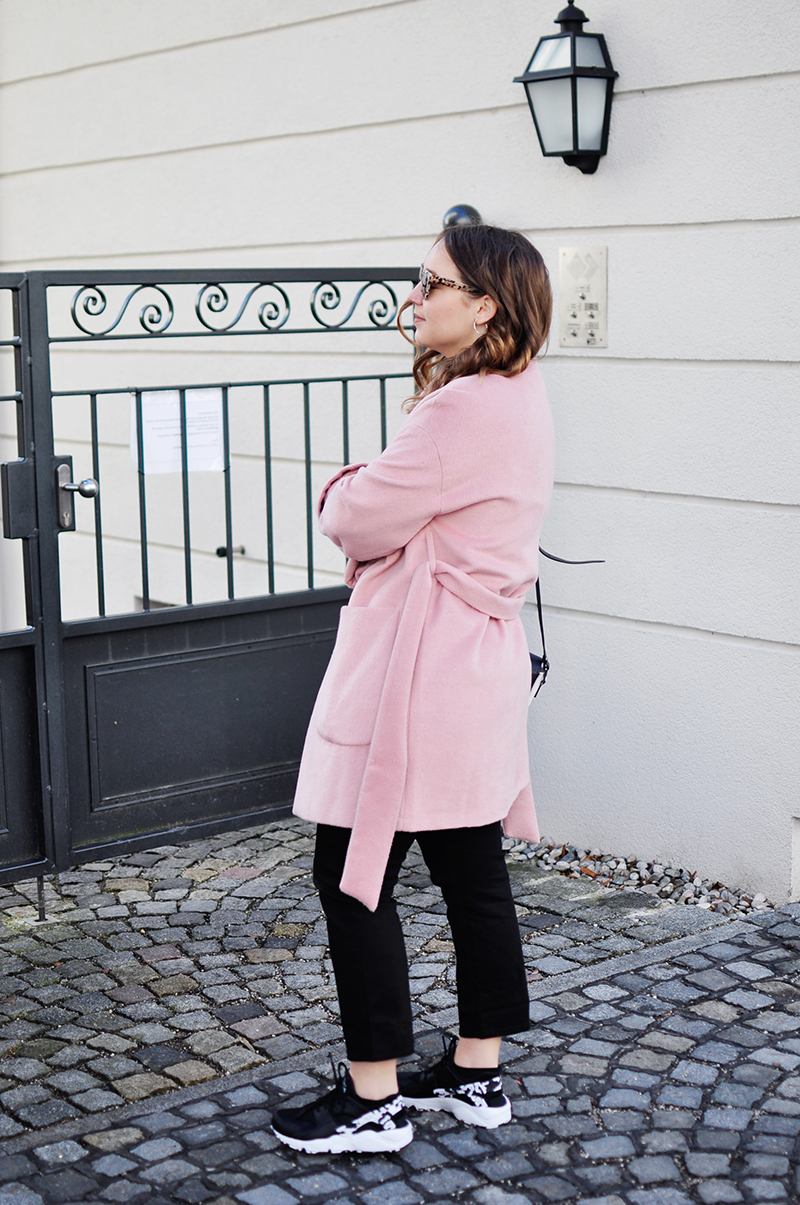 Da meine Lieblingsschuhe und gefühlt alle anderen tragbaren Exemplare meines Kleiderschranks gerade kaputt gegangen sind, befinde ich mich also in einer akuten Schuh-Krise, von der ich euch letzte Woche schon erzählt habe. Mein erster Versuch einer Heilmethode: Über den Tellerrand des Stiefeletten-Kosmos hinausschauen, um neues Schuh-Gefühl zu schnuppern, und danach eventuell wieder klareren Kopfes die Stiefeletten-Entscheidung treffen zu können. Auf Einladung von DefShop habe ich mich also mal wieder in die Sneakerwelt vorgewagt – es wurden die Nike Huarache in Schwarz-Stracciatella, die ganz unerwartet gut zu meiner Garderobe passen und nebenbei auch die Frühlingsstimmung einläuten. Denn nach Schneematsch und Eiseskälte kommt die Sneakerzeit!