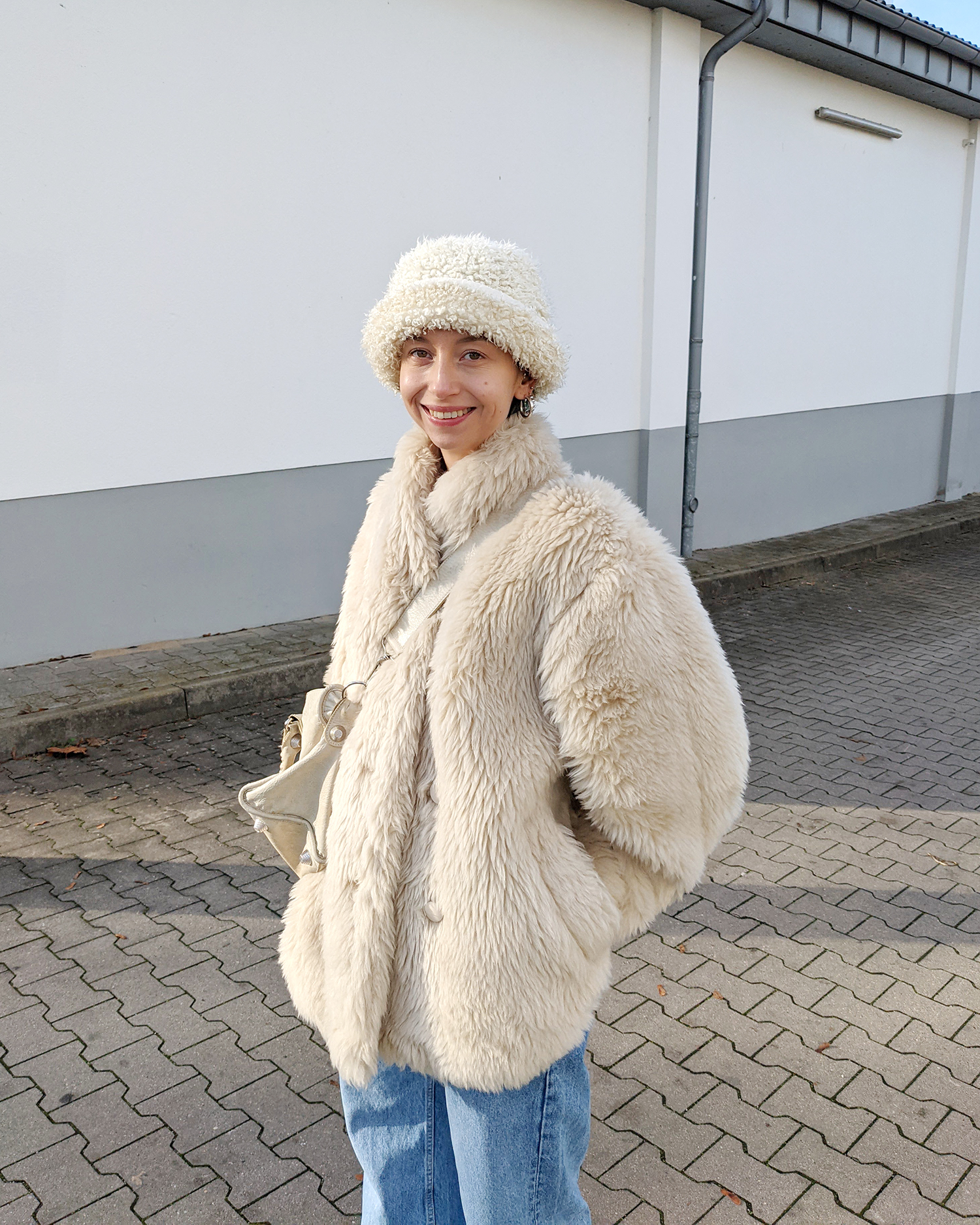 Outfit: Die übergroße Teddyjacke als kleiner Lichtblick