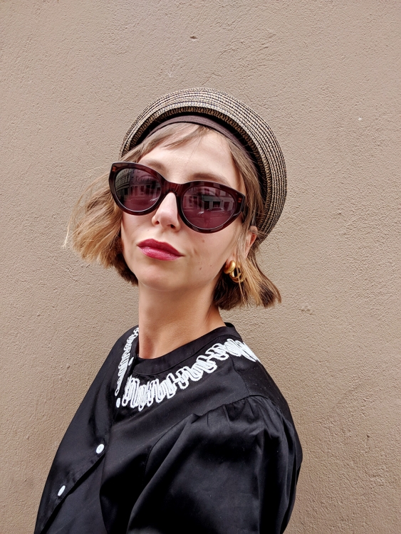 Bluse: Opening Ceremony 70% off thanks to Zalando Lounge, Jeans: Levis 70% off thanks to Zalando Lounge, Loafer: Dorateymur, Tasche: Vintage, Sonnenbrille: Viu, Hut: Brixton