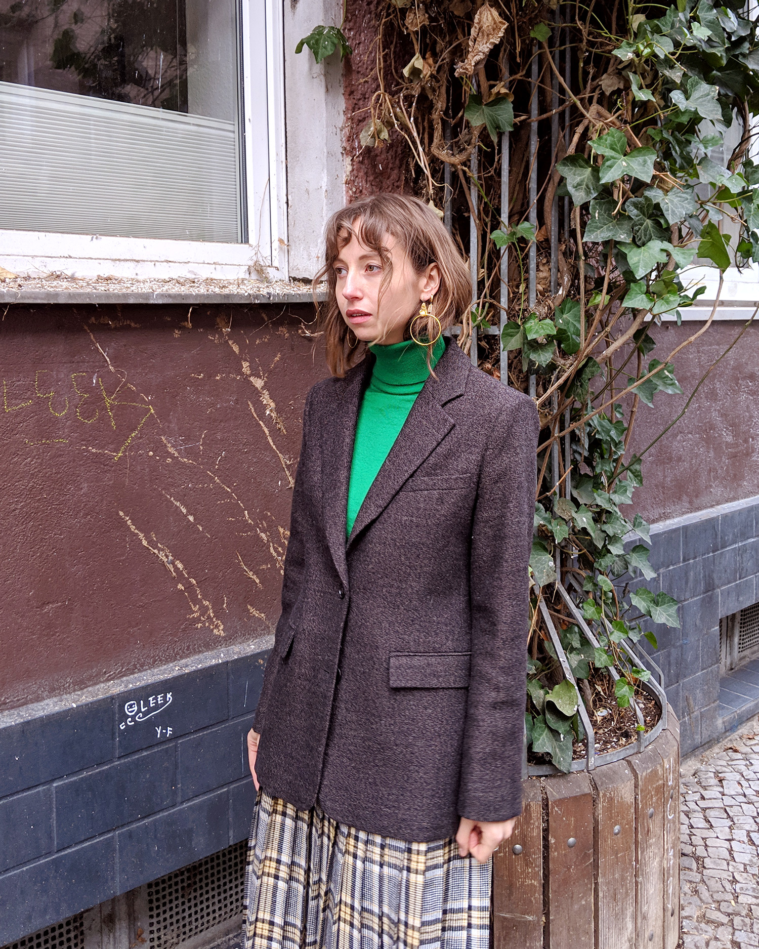 Blazer: & Other Stories, Pullover: L.F. Makey, Rock: Vintage, Strümpfe: Burlington, Clogs: Sanita, Ohrringe: Vibe Harsloef