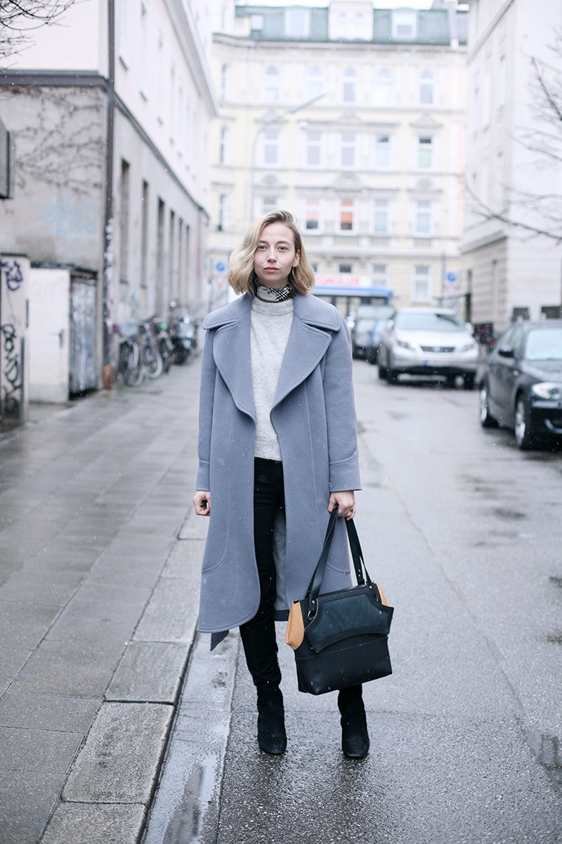 Mantel: Dimitri (ähnlicher hier), Jeans: Lee (ähnliche hier), Pullover: H&M (ähnlicher hier), Overknees: Sam Edelman (ähnliche hier), Tasche: Lauren Geoghegan, Tuch: Sarah Kaldewey, Ohrring: Jane Koenig