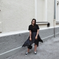 Tshirt – COS (alt, ähnliches hier), Rock – Asos (alt, aber noch erhältlich), Sneaker – Vans, Tasche – Jimmy Choo, Sonnenbrille – & other stories (alt, ähnliche hier)
