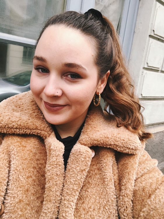 Teddyjacke: Edited / Rock: Monki / Schuhe: &other stories / Tasche: Aigner Lexi / Rolli: Calida / Ohrringe: Jane Koenig