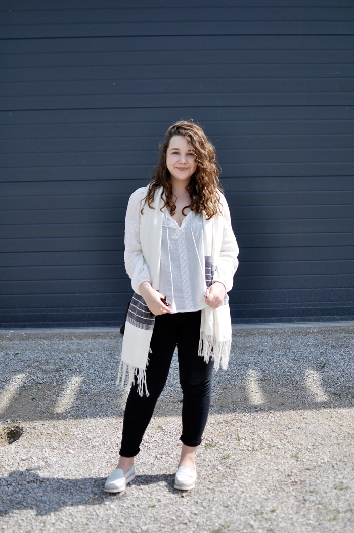 Schal: aus Marrakesch (ähnlicher hier) / Tunika: Esprit / Tasche: Bally (ähnliche hier) / Jeans: Topshop Jamie / Schuhe: Melvin&Hamilton / Sonnenbrille: Ray Ban