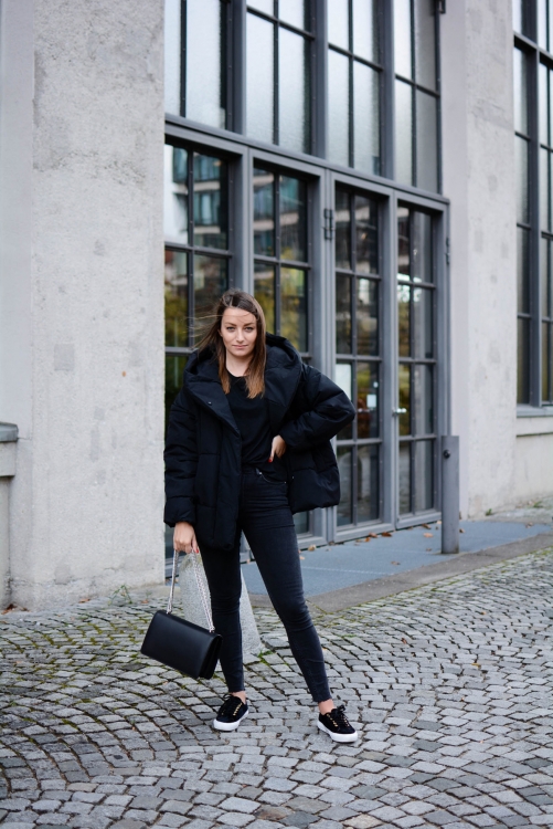 Pufferjacket – H&M (ähnliche hier), Tshirt – COS (ähnliches hier), Jeans – Weekday (selbst abgeschnitten), Sneaker – Superga (Sale!), Tasche – Agneel (ähnliche hier)
