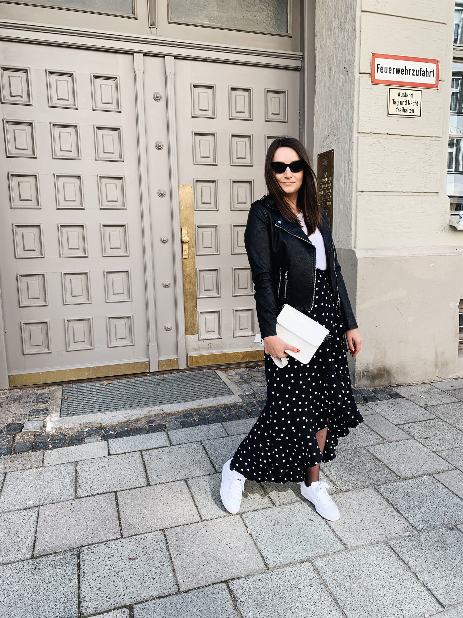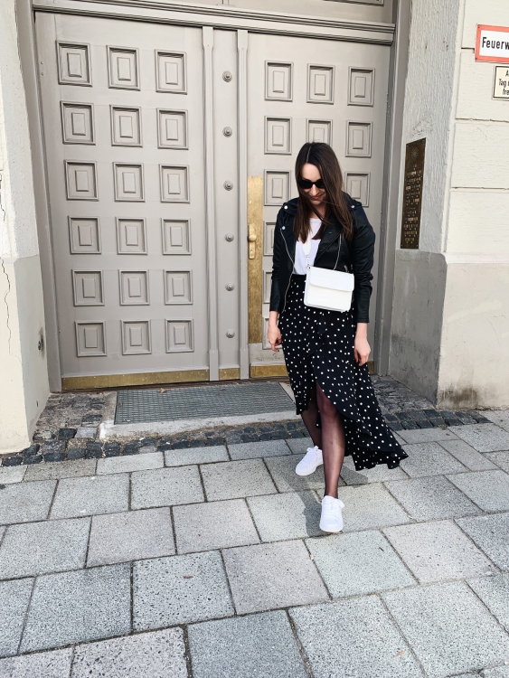 Also habe ich die Beine hochgelegt, ausgeruht und viel geschlafen. Zum heutigen Sonntag kann ich sagen: Das Schlimmste ist überstanden, und ich konnte tatsächlich in normalen Klamotten das Haus verlassen. Vitamin D tut ja bekanntlich gut. Mit meinem neuen Pünktchen-Rock bei 17 Grad fühlte ich mich fast wie neugeboren, dieser Maxi-Mini-Rock ist ein absoluter Liebling. Grundsätzlich gilt für diesen Frühling: wieder mehr Weiblichkeit. Und bitte weniger Migräne.