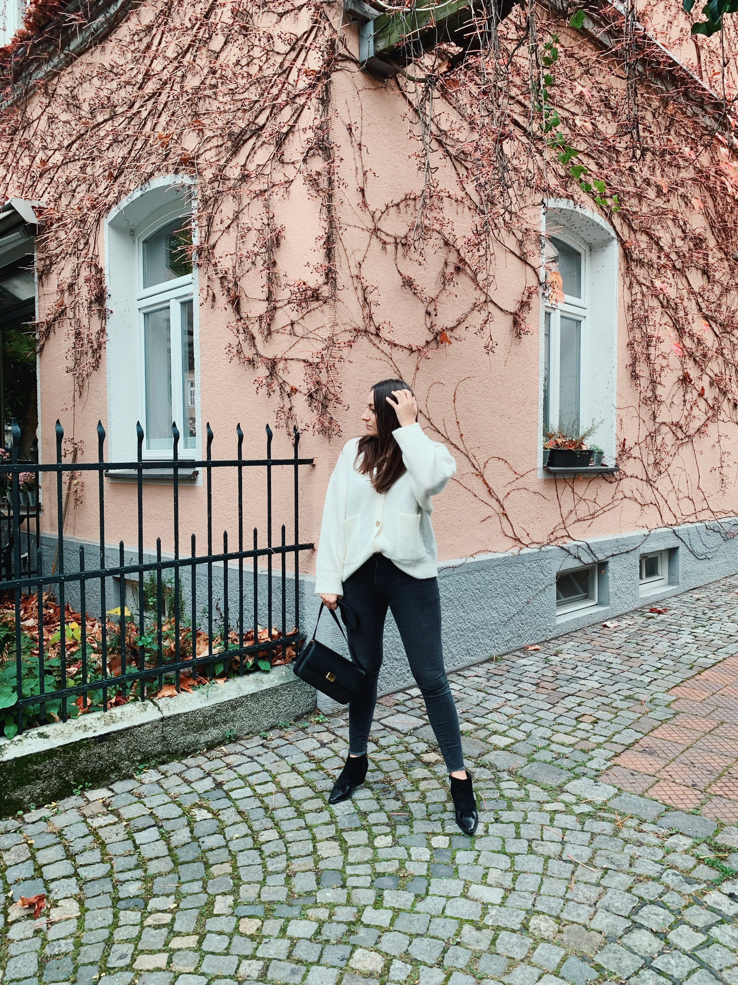 Für ein Wochenende vor dem Laptop, mit ganz viel Tee und Keksen und leider viel zu wenig frischer Luft und Bewegung kam mir der kuschlige Cardigan von & other stories gerade recht. Er ist so schön oversized, so dass er einen fast wie eine dicke Decke umhüllt und wärmt. Mein neuer Mantel von Ivy & Oak hingegen ist mein neustes Fair-Fashion-Teil und macht mich jetzt schon ganz glücklich. Der Bathrobe-Schnitt ist wunderschön, das Gefühl, ein faires langlebiges Teil zu tragen noch viel mehr. Für alle, die sich den Kauf überlegen: Wenn ihr einen dicken Cardigan drunter tragen wollt, nehmt am besten eine Nummer größer. Bei mir war’s dann doch doch mit beiden Teilen übereinander recht eng, dafür aber schön warm.