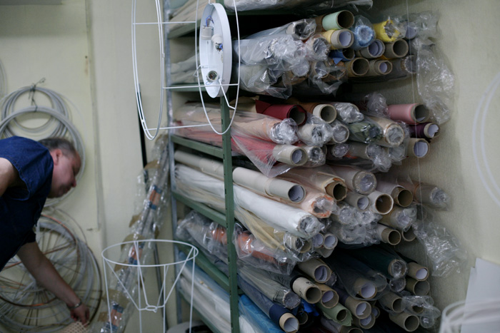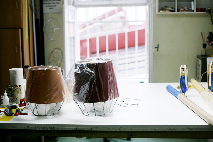 Die Möbel von Diaz&Weitz sind komplett in München hergestellt, was die Beobachtung bei der Entstehung natürlich weitaus vereinfachte. Wir besuchten an einem verregneten Nachmittag den Lampenbauer Thomas Möller, der die schon zuvor gefertigten Gestelle beim Gestellbauer, sowie anschließend lackierten Schönheiten vom Lackierer, zu dem letztendlichen Design zusammen führt, das Maren und Cladia entworfen haben. Ich fühle mich etwas wie bei Meister Eder in seiner Werkstatt Lampen Möller, zu Recht, denn die Werkstatt von Thomas gibt es nicht nur schon in der dritten Generation und seit 1936, man sieht ihr die Geschichte der vergangenen Jahrzehnte an – auf eine nostalgische und wunderschöne Art und Weise. Das Geschäft läuft gut. Einrichtung ist gefragt wie nie und Thomas kommt kaum hinter all den privaten Anfragen Interieur-Begeisterter hinterher. Wie auch Maren eine ist.
