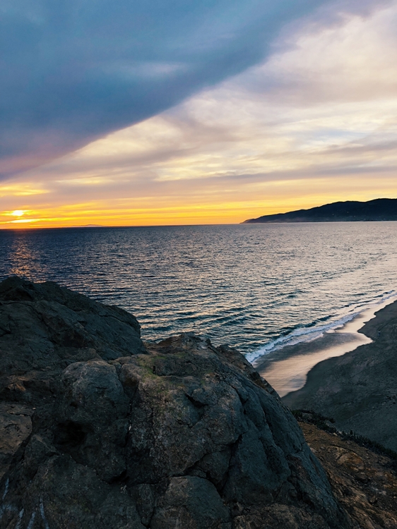 Wenn man wie wir schon in Santa Monica verweilt, dem äußeren nordwestlichen Winkel der Stadt, ist ein Ausflug nach Malibu fast Pflicht – schon allein deshalb, weil eine Fahrt den Pacific Coast Highway entlang so viel schöner ist, als sich durch den L.A.-Innenstadtsverkehr zu kämpfen. Etwa 40 Minuten von Santa Monica entfernt befindet sich das erste wunderschöne Strand-Highlight Malibus: Point Dume, eine Klippe, die über dem Malibu State Beach mit seinen sagenhaft schönen Strandvillen thront. Von hier aus sieht man links, rechts und vor einem nur Wellen, die an den Strand und die Klippen schäumen, und bei leicht bewölktem Himmel den beeindruckendsten, purpurroten Sonnenuntergang. Und weil das alles ja nicht reicht zum glücklich sein, sprangen plötzlich auch noch unzählige Delphine in der Brandung, als wir da so saßen und in den knallroten Himmel starrten.