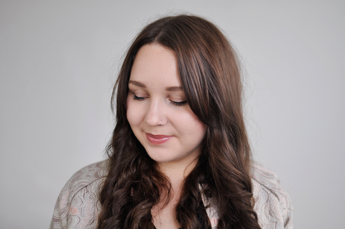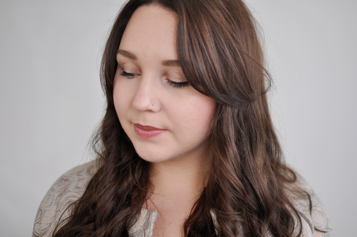 Für die Augen habe ich, um dem Girlylook ein Krönchen aufzusetzen, die Glam Vintage Shimmer Cream in „moonlight“ genommen – eine Glitzercreme, die man als Highlighter definitiv nicht verwenden sollte. Auf den Augenlidern zaubert sie aber den 90er-Carrielook herbei und sorgt für eine kleine, unterschwellige Glitzerportion, die aber nicht zu aufdringlich ist. Ein Eyeliner sollte bei so einem insgesamt doch recht nudefarbenen Look außerdem nicht fehlen.