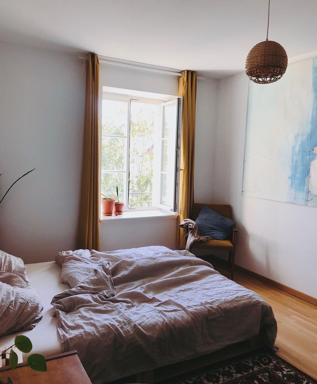 Im Idealfall schaue ich zwei Stunden vorm Schlafengehen nicht mehr auf mein Telefon oder sonstige Screens, sondern lese stattdessen — zuletzt habe ich (etwas verspätet) endlich „Zuhause“ von Daniel Schreiber gelesen und geliebt, jetzt geht es gleich mit „Allein“ weiter. Wenn ich tagsüber lange am Computer gesessen habe (also quasi immer) und verspannt bin, hilft mir meine Akupressur-Matte. Dann noch ätherische Öle in den Diffuser — abends mag ich am liebsten was Waldiges wie Fichtennadeln — und im Zweifelsfall immer hilfreich: meine Wärmflasche.