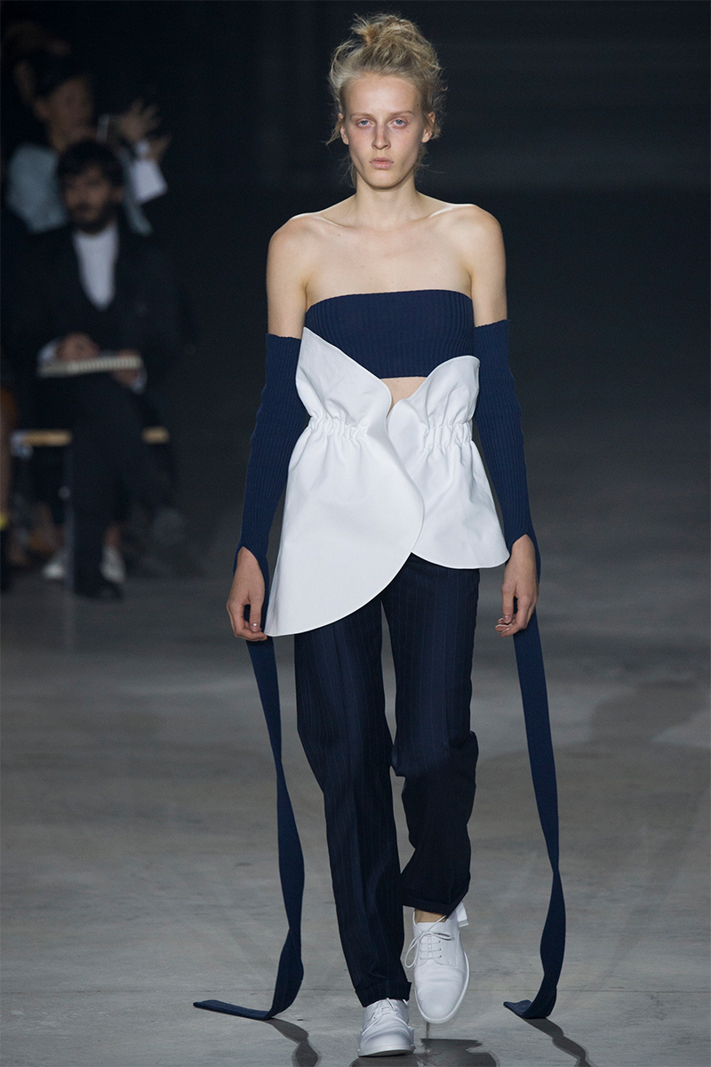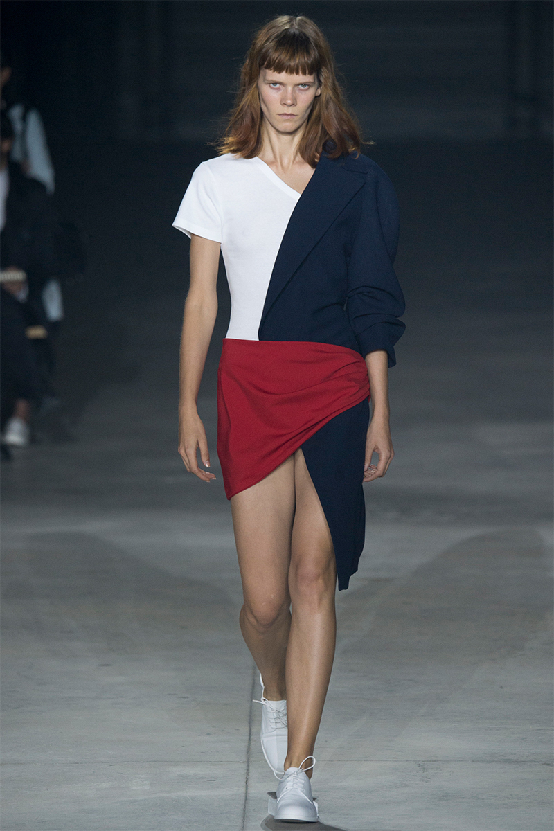 Schon seine Debütkollektion 2013 war den französischen Tricolore-Farben gewidmet, was er nun für Spring/Summer 2016 wieder aufgreift. Zwischen seinen artisanal gewickelten und abgeschnittenen Looks bleibt vor allem eines hängen: eine Hommage an die Klassiker wie das weiße Hemd oder den navyfarbenen Blazer, und das alles in den Tricolore-Farben Frankreichs.