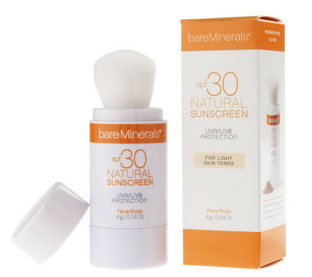 Die dritte Möglichkeit der Re-Applikation von Sonnenschutz nach dem Auftragen von Makeup sind Sonnenschutzpuder aus reflektierenden Mineralien. Die müssen nicht in die Haut einziehen wie beim chemischen Sonnenschutz, sondern legen sich wie ein kleines Schutzschild darüber. Genau diese Eigenschaft ermöglicht es, sie auch nachträglich mit einem Pinsel aufzupudern. Z.B. hier von bareMinerals, oder – die Nummer eins des Puder-Sonnenschutzes – Sunforgettable von Colorescience.