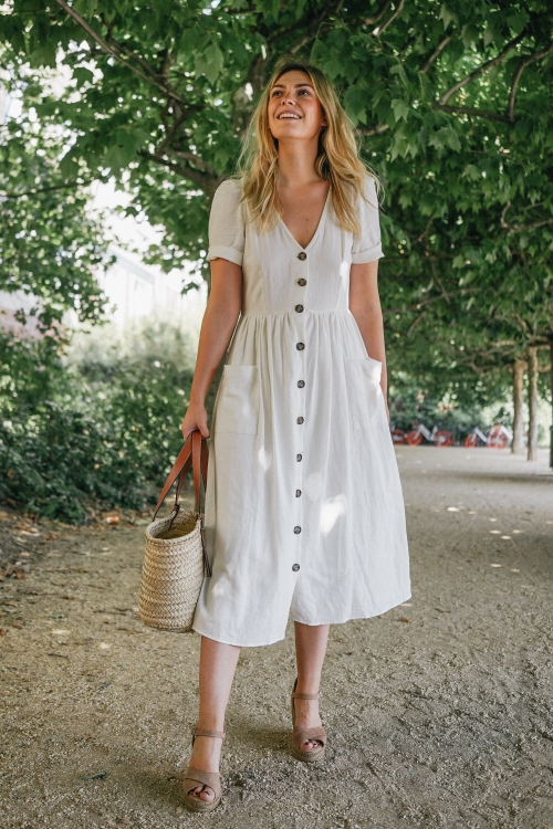 Ich gebe zu, das Kleid gehört eindeutig zu meinen Lieblingskäufen des Sommers! Ich fühle mich darin immer, als ob ich in der Provence einen Marktspaziergang mache, auch wenn ich in der Realität Sechserpacks Hafermilch und Bratwürste in der Metro in Berlin Spandau kaufe. Glamourös ist anders, oder?