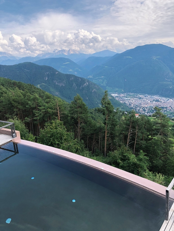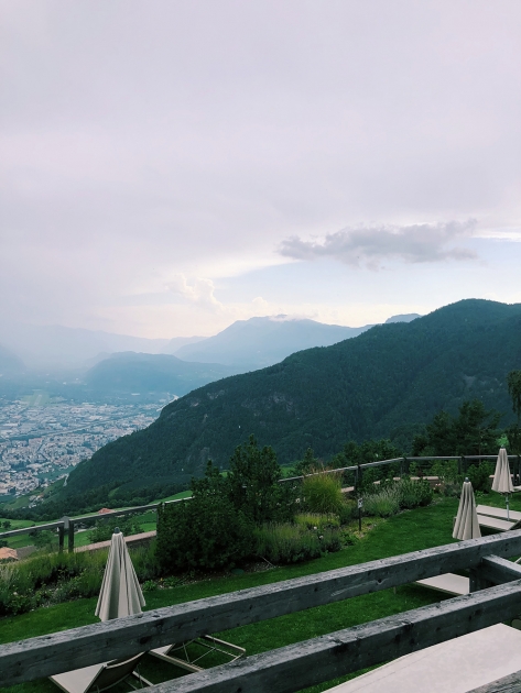 Für diese letzte Station des Italien-Roadtrips habe ich ein ganz besonders wundervolles Hotel gefunden, das meine Vorstellungen von der Bergfrische nach den heißen Tagen mehr als übertroffen hat. Das Hotel Belvedere ist ein „alpines Hideaway“ in den Bergen über Bozen, und dieser Begriff fasst gut in Worte, wie man sich dort oben fühlt: Schwebend über allem, mit einem atemberaubenden Blick, wo auch immer man hinsieht, wohlig eingebettet, selbst wenn ein heftiges Gebirgs-Gewitter alles erschüttert.
