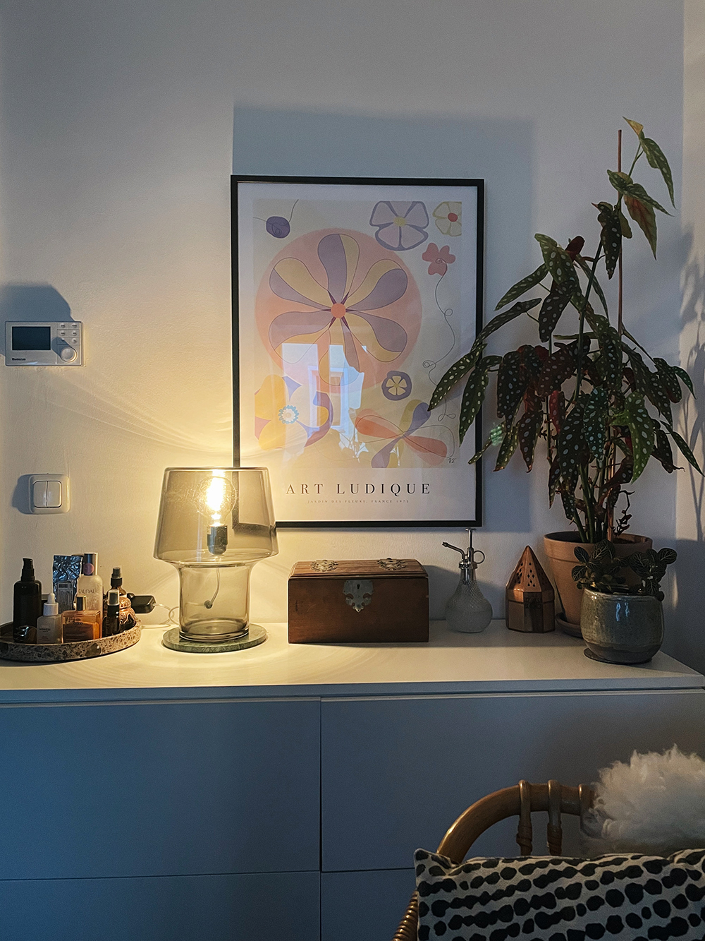 So lange es allerdings noch nicht spürbar heller wird, setze ich auf ganz viel Licht zu Hause. Und zwar in Form von kleinen Tischlampen mit warmen Glühbirnen, die zwar einzeln nicht so hell sind wie ein Deckenfluter, dem Raum aber ganz viel warme Lichtmagie einhauchen. Denn je mehr kleine, warme Lichtquellen in einem Raum stehen, desto gemütlicher und atmosphärischer wird er. Abends, wenn es draußen ganz dunkel ist, in der dämmerigen Blauen Stunde, aber auch tagsüber, wenn dicke Wolken und Schneeschauer alles verdüstern.